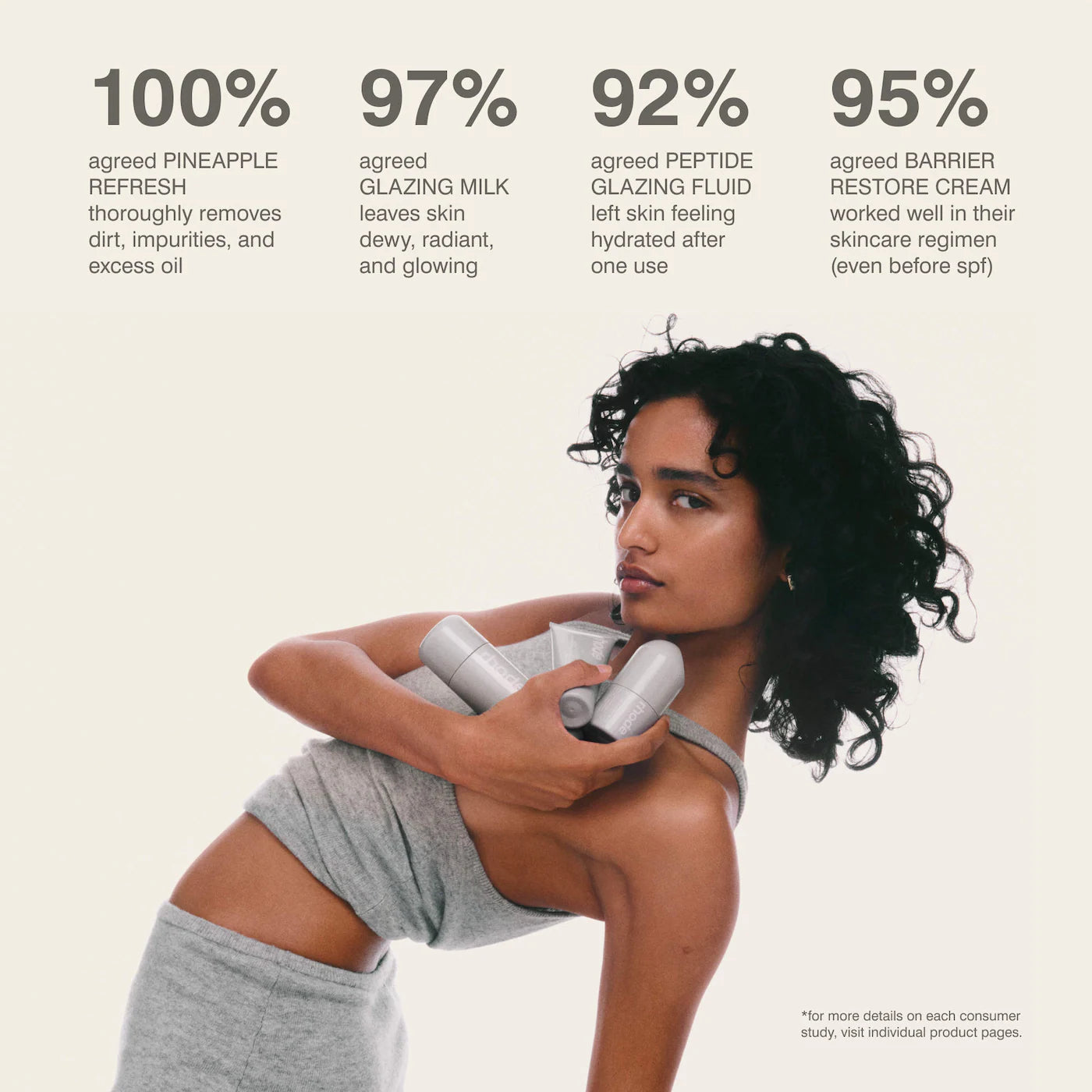 - El 97% estuvo de acuerdo en que Glazing Milk deja la piel hidratada, radiante y luminosa.